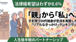 Goens株式会社が行った、子を持つ50代独身男女308名を対象にした意識調査では、世間で語られる「アクティブなシニア恋活」のイメージとは少し異なる、当事者たちの冷静な本音が浮かび上がってきました。