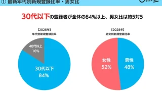 2025年のデータを見ると、30代以下の登録者が全体の84%以上を占め、男女比も約5対5と、ほぼ均等なんですね。僕たちの世代が中心になっていることがわかります。